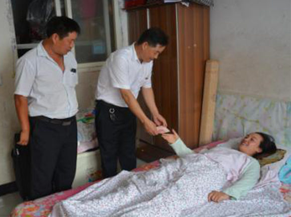 2016年8月20日,陕西奥翔天越实业有限公司肖董事长得知长安合能城项目工地员工樊公理妻子患病手术后,立即指示公司行政部、工会前去看望慰问。公司行政副总谢同银、工会专员朱万根、项目经理李孝国代表公司及肖董事长前往樊公理家里看望了他患病手术后的妻子,为她送去了慰问金和慰问品,送上了企业对员工的关爱,使樊公理感受到了“奥翔大家庭”的温暖。行政副总谢同银详细询问了她的身体状况和生活情况,鼓励她要保持乐观的心态,积极配合治疗,争取早日康复。叮嘱樊公理要照顾好妻子,有困难及时向公司反映,鼓起信心,度过难关。